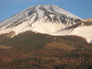 富士山は休火山ではない。活火山である。 5月の頂上では深雪にもかかわらず、地面が凍結して部分もある。 |
