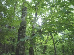 コシアブラ・タラノメ・ハリギリの山菜が多くある。コシアブラの大木が切り倒されていたが、これも村人